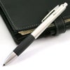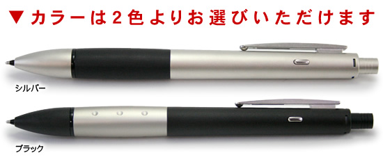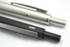 丸みのあるペン先で、メタルなのにシャープになりすぎず、柔らかい雰囲気。ブラック軸はメタルグリップでドットが施されています。シルバー軸はすべりにくいラバー素材。