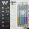 黒い紙にも白い紙にも書けるゲルインキボールペン。かわいいパステルカラーの6色セット。細字なのに驚きの高発色です。