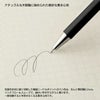 六角形の木でできた軸はまさに鉛筆の持ち心地。どこか懐かしく、程よく手になじみます。先端を針状に細く切削したニードルポイントチップと、水性のなめらかさと油性の安定性を持った低粘性ソフトインク。