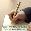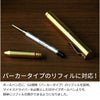 ペンの部品は丈夫な金属素材を1本1本削り出して製作。プレス成型に比べ手間がかかりますが、丈夫な部品を作れるため長く使う事に適しています。真鍮のペンは使い込むほどに金属の経年変化をお楽しみいただけます。装飾のない非常にシンプルなデザインで、飽きることなく使い続けることができますよ。