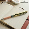 真鍮のホルダーと木軸が組み合わされたボールペンです。木軸はまるで鉛筆を握っているような懐かしい質感。真鍮の素材が入っていても重さは約16gと軽めなので、かっこよくても重たいものは苦手、という方にぴったりです。