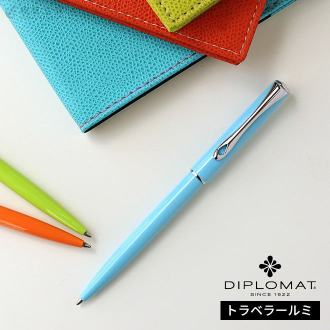 パステルカラーでスリムなペン軸の「トラベラールミ」は明るく手元を彩ってくれるドイツブランドのボールペン。日々の暮らしの差し色として、デスクに映えるイチオシのボールペンです。ディプロマット(Diplomat)は「外交官」を意味する言葉