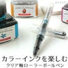 カラーインクの美しさにうっとりクリア軸のペンは、中に入れるインクによって見た目ががらっと変わるのが面白いところ。お気に入りのインクを入れれば、書く最中もインクの揺らめきに心がうきうき。インクの残量が一目で分かる便利さもあります。