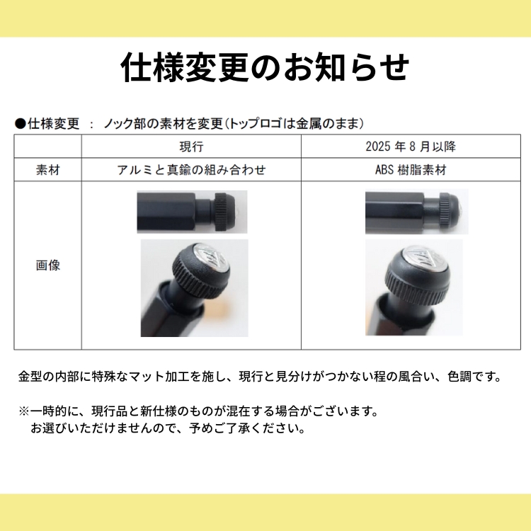 ・(2025年8月以降より、ノック部分の素材をABS樹脂素材に仕様変更。トップロゴは金属のまま)