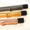 ルクスの尻軸部サイドには「LAMY」のロゴが。盛り上がった加工で、サファリやアルスターとは、違った雰囲気を味わえます。クリップからボディまで同一のカラー