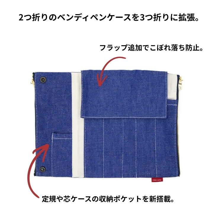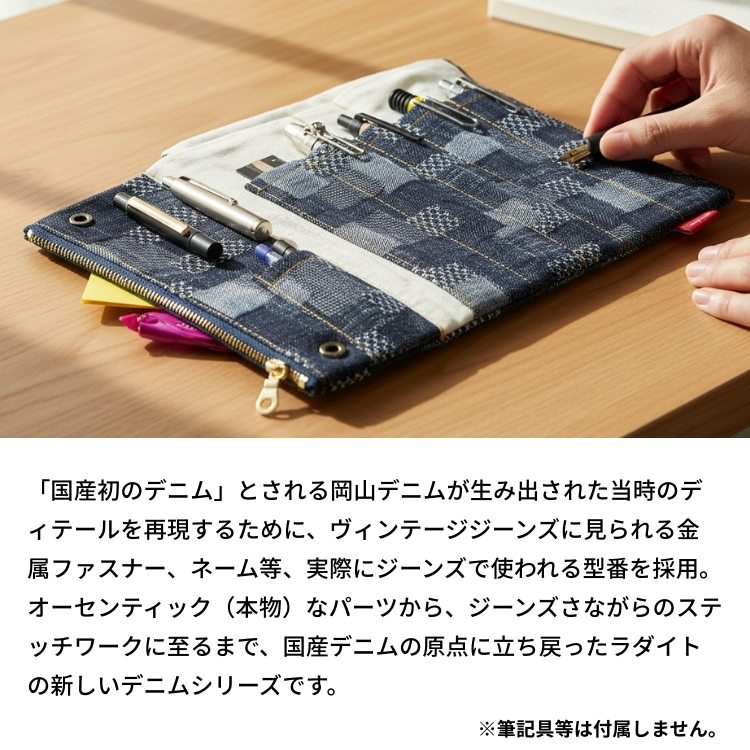 ラダイトの人気定番、リゾネートペンケースにデニムverが登場。たっぷり収納、細かく整頓できます。