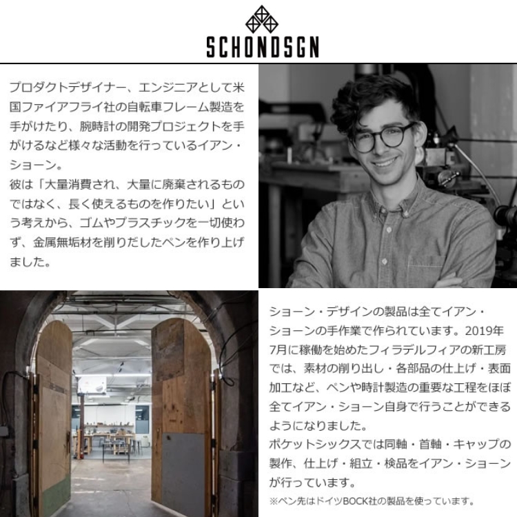丈夫さ・コンパクトさ・書き心地を兼ね備えたイアン・ショーンのこだわりの詰まった、毎日持ち歩くのに最適な6061-T6アルミニウム合金製の万年筆です。