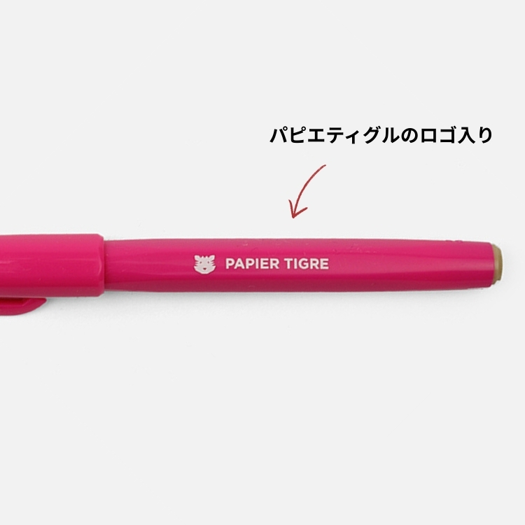 1963年の発売から今もなお世界中で愛されているぺんてるのベストセラーの水性サインペンに、PAPIER TIGREのロゴが施されています。