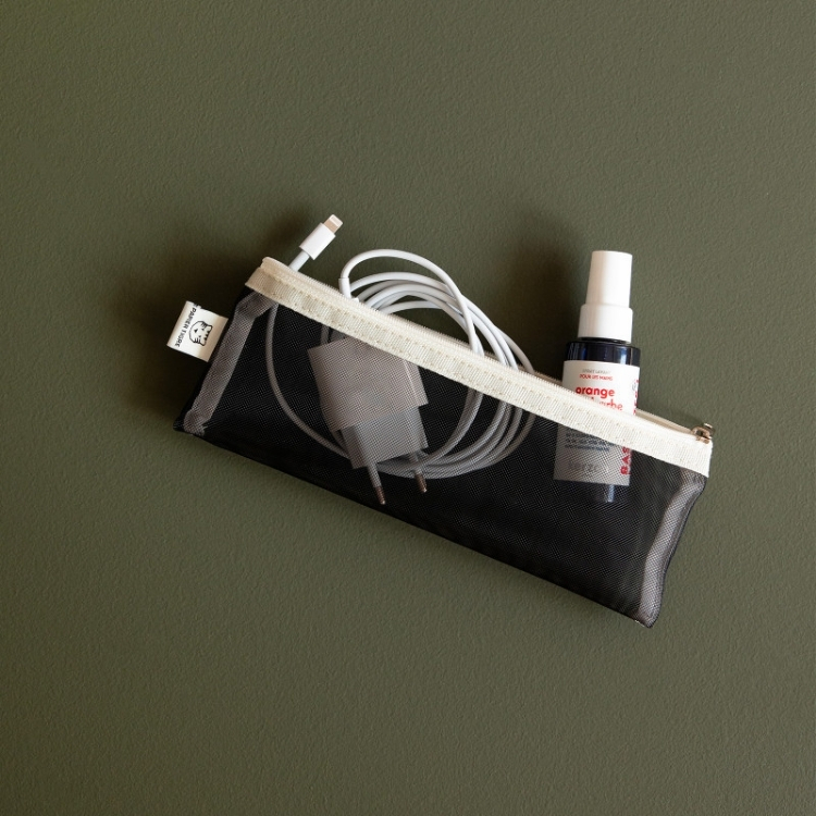 メッシュタイプのペンケース。ステーショナリーはもちろん、いつも持ち歩くアイテムを自分流にアレンジして。