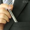 メタルボディのペンはスーツ姿にもバッチリ似合うグッと目を引くメタルボディが、スーツのポケットにもよく馴染みます。取引先やお客様の前でも自信をもって使えますね。