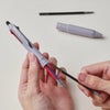 ビジネスシーンでの使用が多い3色ボールペンに「シナジーチップ」を初めて採用しました。細書きでありながら、かすれず、なめらかな書き心地を実現しました。