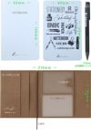 外出先でも何か書きたい!そんな和気文具インスタ担当者のわがままを叶えるべく作ったのがこの『持ち歩きノートセット』です。水に濡れても破れにくい耐久性に優れた「ウォッシャブルクラフトペーパー」の『ノートカバー』に『和気文具オリジナル方眼ノート』『和気文具オリジナル下敷き』担当者愛用のペン『ジュースアップ0.3ブラック』の4点をセットした和気文具だけのオリジナルセット。出先で「ちょこっと書きたい」を叶える