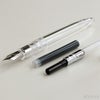 手におさまりの良いサイズ感で本体も軽く、持ちやすさ◎扱いやすいので万年筆初心者の方の初めての1本にもオススメです。万年筆愛好家の方には透明軸ならではの面白さを活かしてカラーインク用として楽しんで頂きたい1本です。インクを変えると、印象がらり