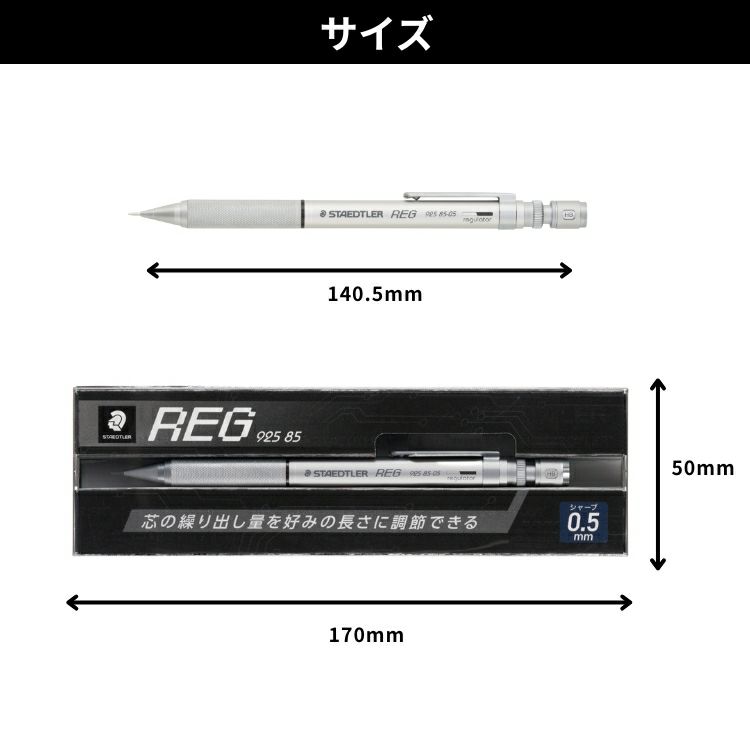 他の画像を見る 【待望の復刻】芯の繰り出し量を自分好みにカスタマイズ ステッドラー シャープペンシル レグ 復刻 STAEDTLER REG 0.3mm 0.5mm シャーペン 925 85 ◇ 価格 ¥ 3,630 税込 カートに入れる お気に入りに登録する