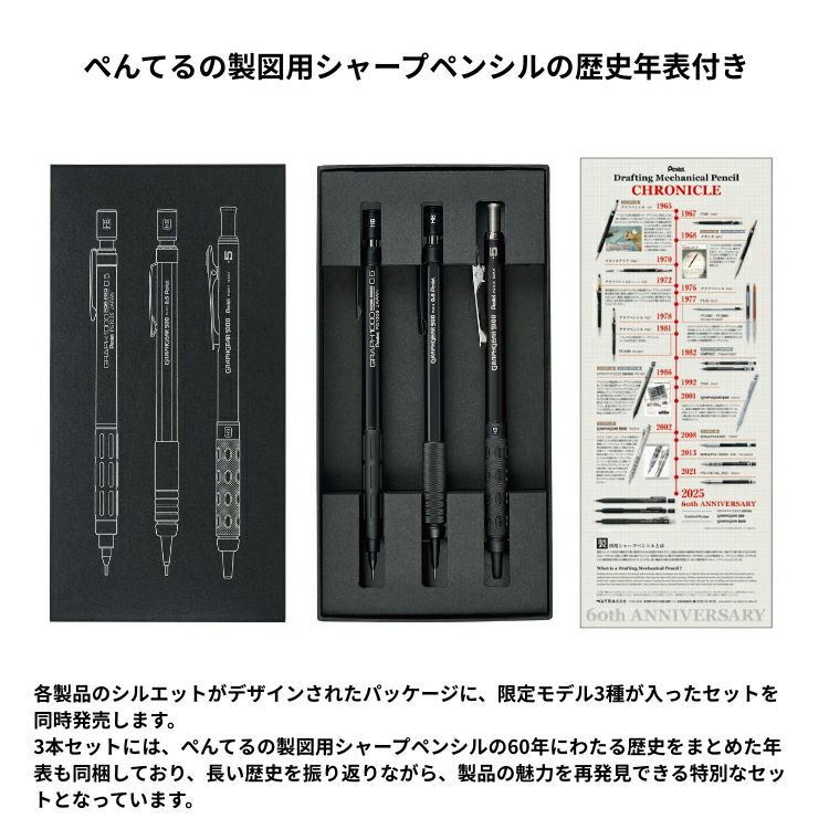 他の画像を見る 製図用シャープペンシル発売60周年を記念した限定モデル 購入特典付! 60周年 限定 ぺんてる 製図用シャープペンシル 3本セット GRAPHGEAR Pentel シャーペン 価格 ¥ 4,950 税込 カートに入れる お気に入りに登録する