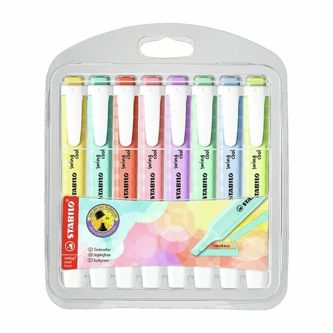 発色抜群!置いてあるだけで“映える”お洒落な薄型蛍光ペンペンタイプ「スイングクール」の、パステルカラー9色です。