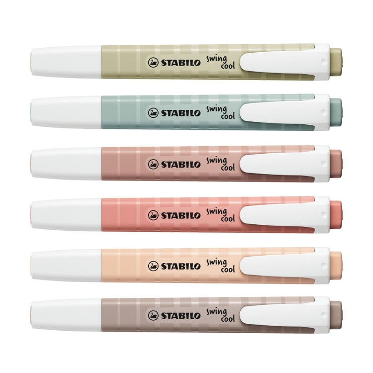 スタビロの人気マーカー「スイングクール」から、「スイングクール ネイチャーカラー」が新登場。淡いカラーの6色セットです。
