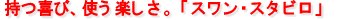 1855年、鉛筆製造からスタートし、高品質でユニークなその製品は現在の「スワン・スタビロ」の地位を不動のものにしました。その技術は、世界に先駆け開発した蛍光マーカー「スタビロ・ボス」を世に出したことにより、現在も高い信頼を得ています。