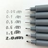 0.05は極細の線で細部を丁寧に描く時に。0.1、0.3はメインの線を描く時に。0.5、1.2でイラストの外側を縁取ると際立ちます。斧型は広範囲の色を塗るのに便利。この6本で表現の幅がグッと広がりますよ。