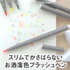 スリムでかさばらないお洒落なカラーのブラッシュペン。ブラッシュペンで細身のタイプは珍しく、小さめのペンケースにもスルリと収まります。普段のノートや手帳に使いやすい淡い色使いのペールタイプです。