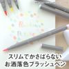 スリムでかさばらないお洒落なカラーのブラッシュペン。ブラッシュペンで細身のタイプは珍しく、小さめのペンケースにもスルリと収まります。グレイ系とブラウン系、それぞれ3段階の微妙な味わいが楽しめるトーンタイプです。