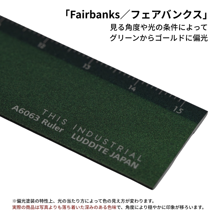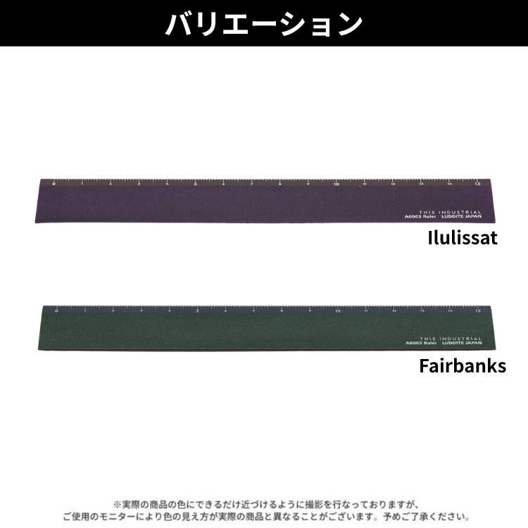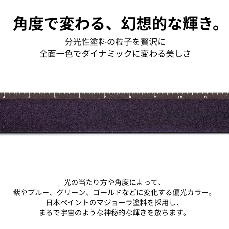 「Ilulissat/イルリサット」ブルーからパープルに、「Fairbanks/フェアバンクス」グリーンからゴールドに見る角度や光の条件によって偏光する美しく、鮮やかなルーラー
