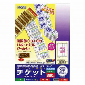 エーワン A-One パソコンで手作りチケット 4列11連 連続タイプ A4判 20シート