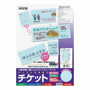 エーワン A-One パソコンで手作りチケット 8面半券付 A4判 ブルー 20シート