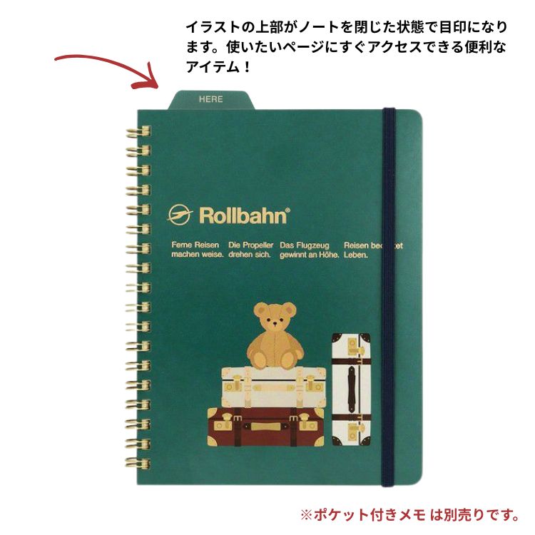 思わずカメラのシャッターを切りたくなるような、旅で出合うさまざまな体験を描いたロルバーン ポケット付メモ。