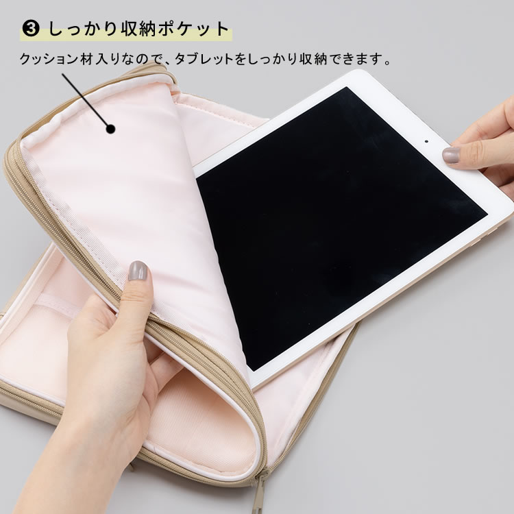 透け感、重なる。たっぷり2層タイプのタブレットケースしっかり収納できるポケットと、中身が見える半透明のメッシュポケットの2層式タブレットケース。