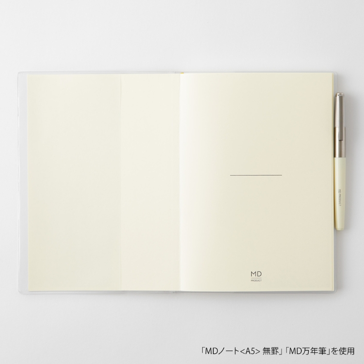 MDノートをやさしく包む、専用のビニールカバーです。透明なビニールカバーがノートの雰囲気を壊さずに、汚れから守ってくれます。