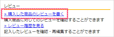レビューを書きたい商品の【レビューを書く】リンクをクリックし、レビューを書く画面へ進みます。