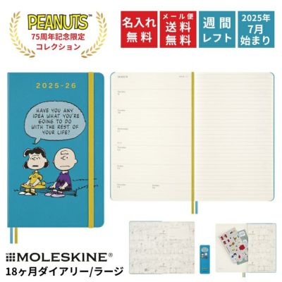 限定 モレスキン × ピーナッツ 手帳 2026年 18ヶ月ダイアリー 2025年7月-2026年12月 週間レフト ウィークリー ラージ チャーリーブラウン & ルーシー CHARLIE & LUCY 【名入れ 無料】【メール便送料無料】 ハードカバー ◇のレビュー