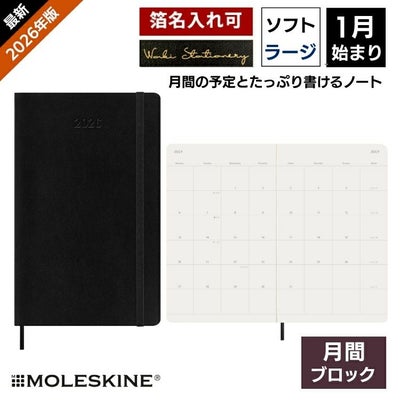 祝日シール付 2026年 手帳 1月始まり モレスキン 月間 マンスリー ソフトカバー ラージサイズ ブラック【レーザー名入れ無料】【メール便送料無料】 ◇のレビュー