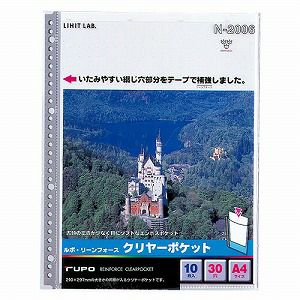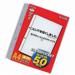 リヒトラブ ルポ・リーンフォース・クリヤーポケット A4 S型 2穴 お徳用パック 1組[50枚] N2208
