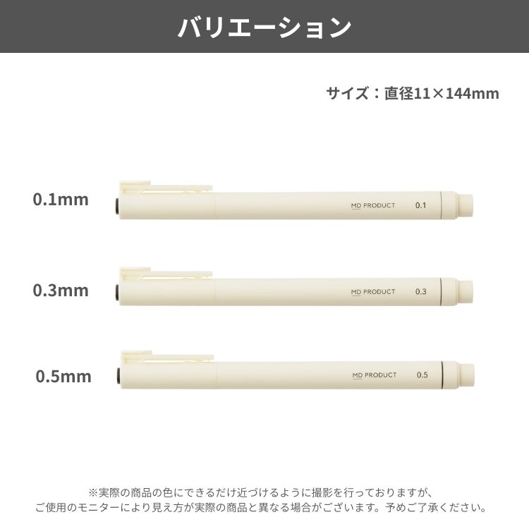 他の画像を見る MDノートに寄り添う、直感的な書き心地。 ミドリ midori MD ドローイングペン 黒 0.1mm 0.3mm 0.5mm デザイン文具 おしゃれ文具 価格 ¥ 396 税込 カートに入れる お気に入りに登録する