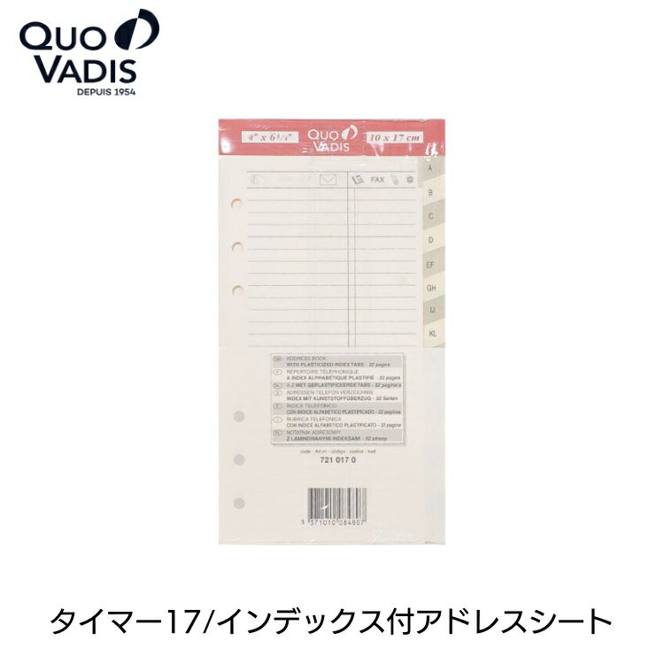 クオバディス ダイアリー タイマー17 リフィル[レフィル] インデックス付アドレスブック[アイボリー]
