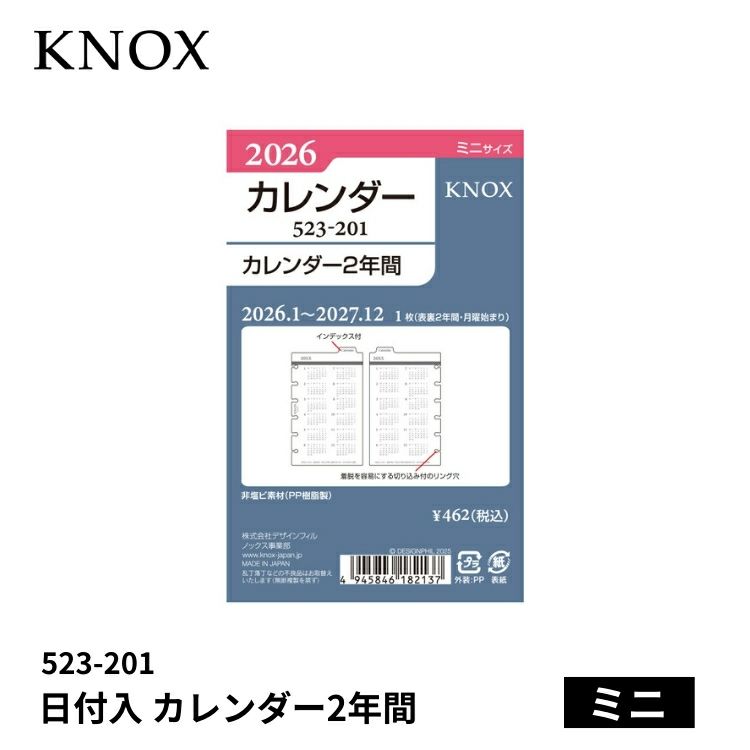 他の画像を見る 【ミニ】システム手帳リフィル 手帳 2026年 ノックス システム手帳 リフィル 日付入 カレンダー2年間 ミニ 523-201 価格 ¥ 462 税込 カートに入れる お気に入りに登録する