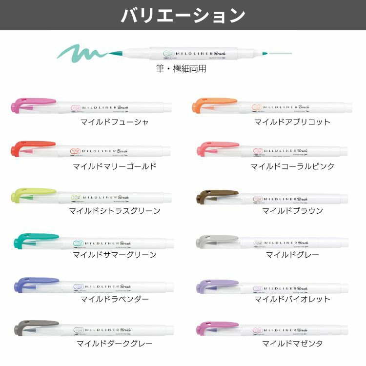 他の画像を見る マイルドライナー ブラッシュ おだやか 色 筆 極細 ゼブラ ZEBRA brush / デザイン文具 おしゃれ文具 ラインマーカー 水性 グラデーション カリグラフィー ◇ 価格 ¥ 165 税込 カートに入れる お気に入りに登録する