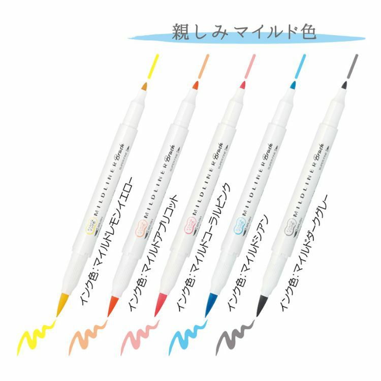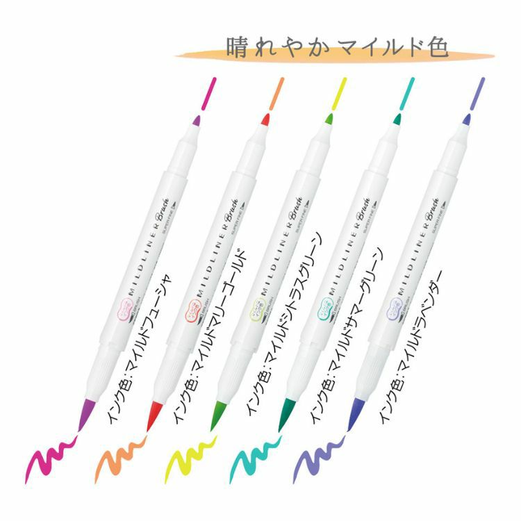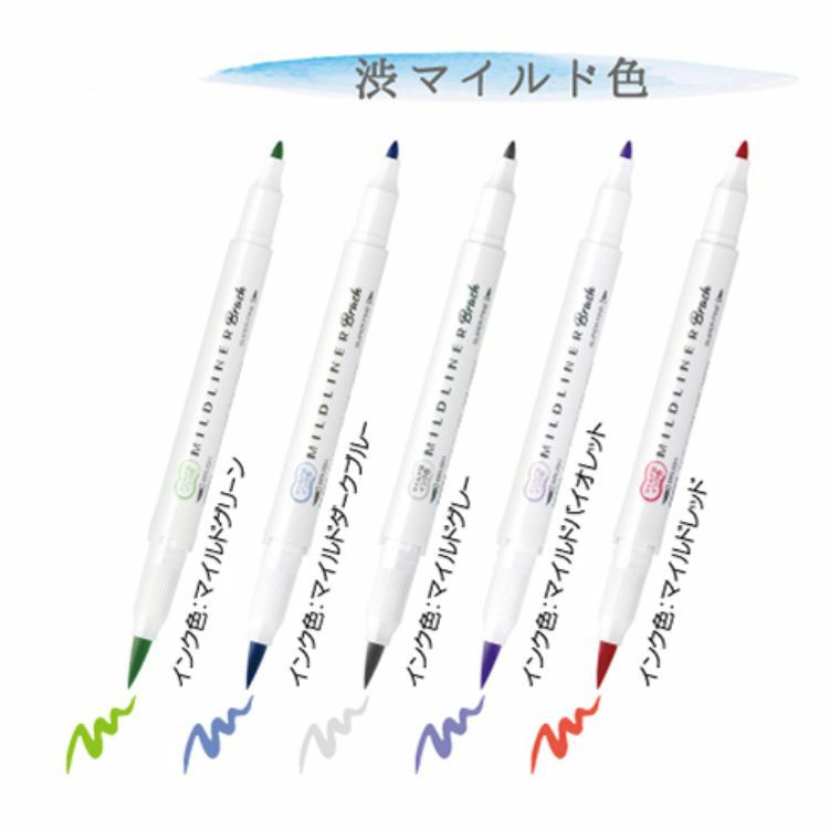他の画像を見る マイルドライナー ブラッシュ 5色 セット おだやか 色 筆 極細 ゼブラ ZEBRA brush 渋 ほんのり蛍光色 和み 晴れやか 親しみ / デザイン文具 おしゃれ文具 ラインマーカー 水性 グラデーション カリグラフィー ◇ 価格 ¥ 825 税込 カートに入れる お気に入りに登録する