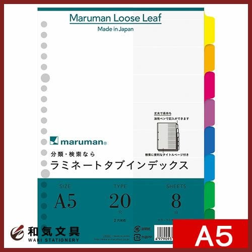マルマン ラミネート タブインデックス 20穴 A5 8山 LT6008 / 10セット