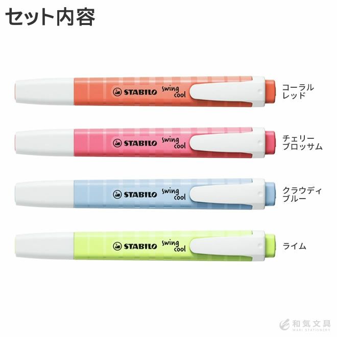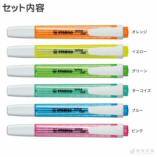 他の画像を見る 綺麗にマーキングできるペン スタビロ STABILO スイングクール ネイチャーカラー 6色セット マーカー 蛍光ペン ◇ 価格 ¥ 1,188 税込 カートに入れる お気に入りに登録する