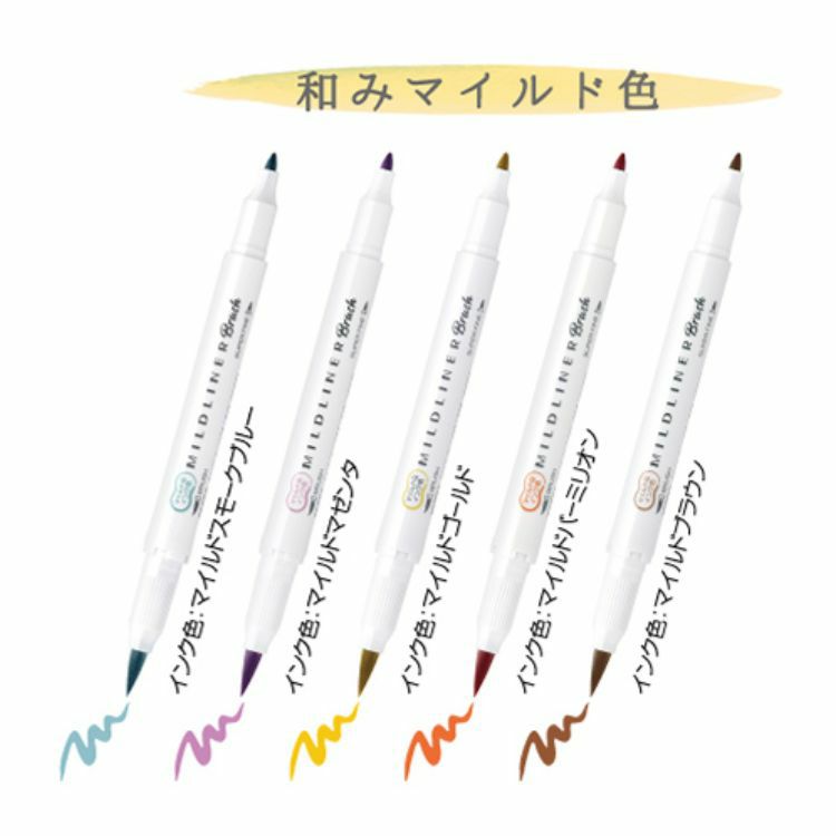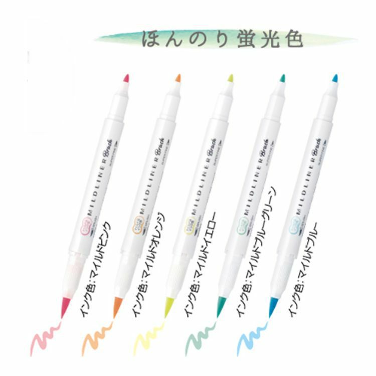 他の画像を見る マイルドライナー ブラッシュ 5色 セット おだやか 色 筆 極細 ゼブラ ZEBRA brush 渋 ほんのり蛍光色 和み 晴れやか 親しみ / デザイン文具 おしゃれ文具 ラインマーカー 水性 グラデーション カリグラフィー ◇ 価格 ¥ 825 税込 カートに入れる お気に入りに登録する