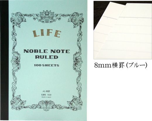ライフ LIFE ノーブルノート A4 8mm横罫[ブルー]