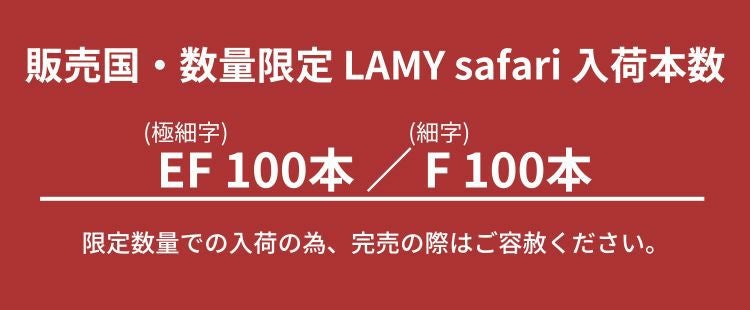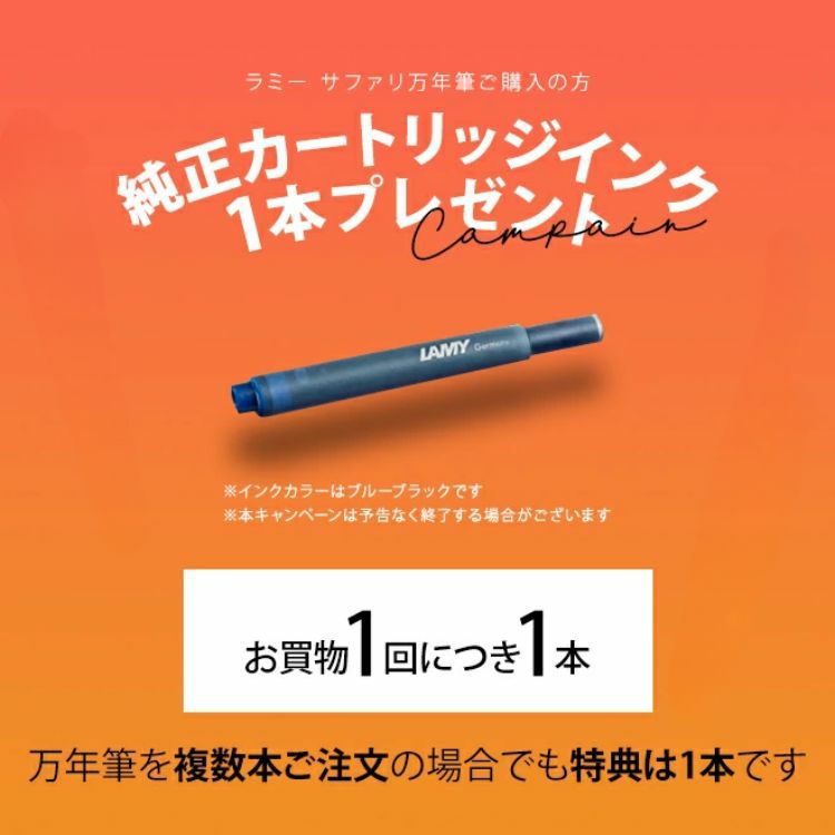 他の画像を見る [ おまけ インクカートリッジ付き ] 限定 ラミー サファリ フィールド グリーン ゴールド クリップ 万年筆 漢字ニブ 2024 価格 ¥ 8,250 税込 在庫切れ 詳細を見る お気に入りに登録する