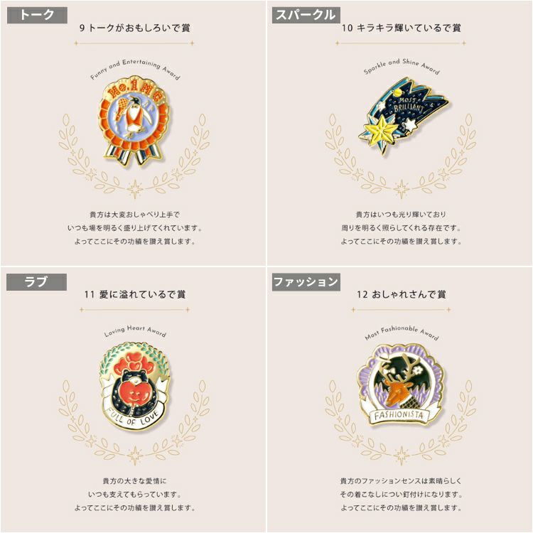 他の画像を見る 相手にぴったりの賞を選んで贈れる、勲章型のピンズ いろは出版 マイアワード ピンズ ベーシック MY AWARD PiNS カスタマイズ 贈り物 プレゼント 価格 ¥ 1,100 税込 カートに入れる お気に入りに登録する