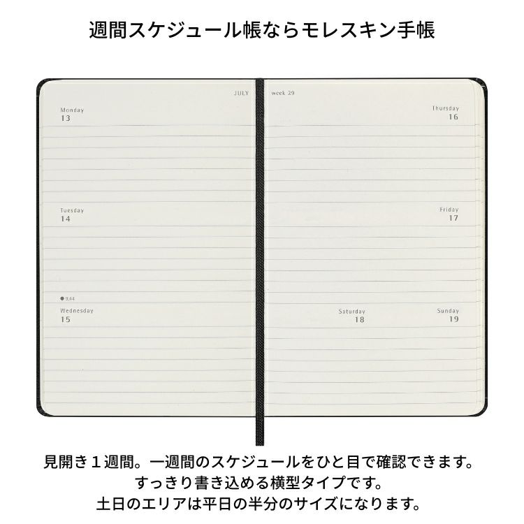 他の画像を見る 【週間レフト】ハードカバー/ラージ カラーカバー 祝日シール付 2026年 手帳 1月始まり モレスキン 週間 スケジュール+ノート[レフト式] ハードカバー ラージサイズ[カラーカバー]【メール便送料無料】 ◇ メール便無料 価格 ¥ 4,400 税込 カートに入れる お気に入りに登録する