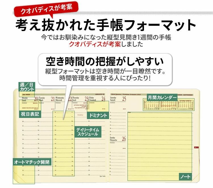 他の画像を見る クオバディス 2026 手帳 ダイアリー スケジュール帳 2026年 手帳 クオバディス 週間 バーチカル[時間軸タテ]8.8×17cm プランニング17 本革[スプリットレザー]カバー デュオ【名入れ 無料】 名入れ無料 価格 ¥ 9,130 税込 詳細を見る お気に入りに登録する