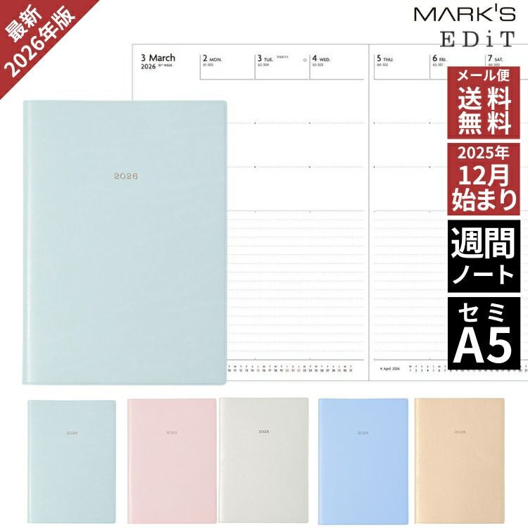 他の画像を見る 1週間の予定とメモを見開きで確認できる 【2026年 4月始まり 手帳】マークス MARK'S エディット EDiT ニュアンスカラー A5変形 週間+ノート【メール便送料無料】 ウィークリー スケジュール帳 ◇ メール便無料 価格 ¥ 2,860 税込 カートに入れる お気に入りに登録する