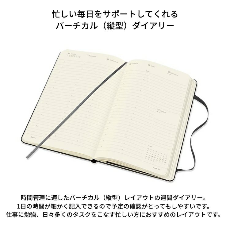 他の画像を見る 【週間バーチカル】ハードカバー/ポケット ブラックカバー 祝日シール付 2026年 手帳 1月始まり モレスキン 週間 バーチカル[時間軸タテ]ハードカバー ポケットサイズ ブラック【レーザー名入れ無料】【メール便送料無料】 メール便無料 名入れ対応 価格 ¥ 3,630 税込 詳細を見る お気に入りに登録する